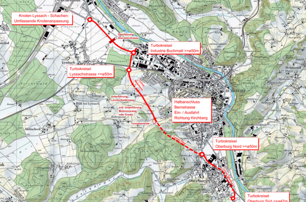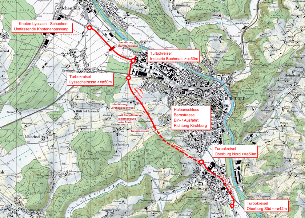 Die Verkehrssituation im Emmental und im Raum Burgdorf wird seit vielen Jahren als unbefriedigend empfunden. Die hohe Verkehrsmenge führt zu Staus in den Spitzenstunden, was wiederum zu Beeinträchtigungen im öffentlichen Verkehr führt. Die Forderung nach einer Umfahrungslösung besteht seit Jahrzehnten. Für die Umsetzung wurden zwei Varianten auf der Stufe eines Vorprojektes untersucht. Eine Variante sieht vor, das bestehende Strassennetz zu verbessern (Variante Null+), eine andere Lösung wäre die grossräumige Umfahrung.