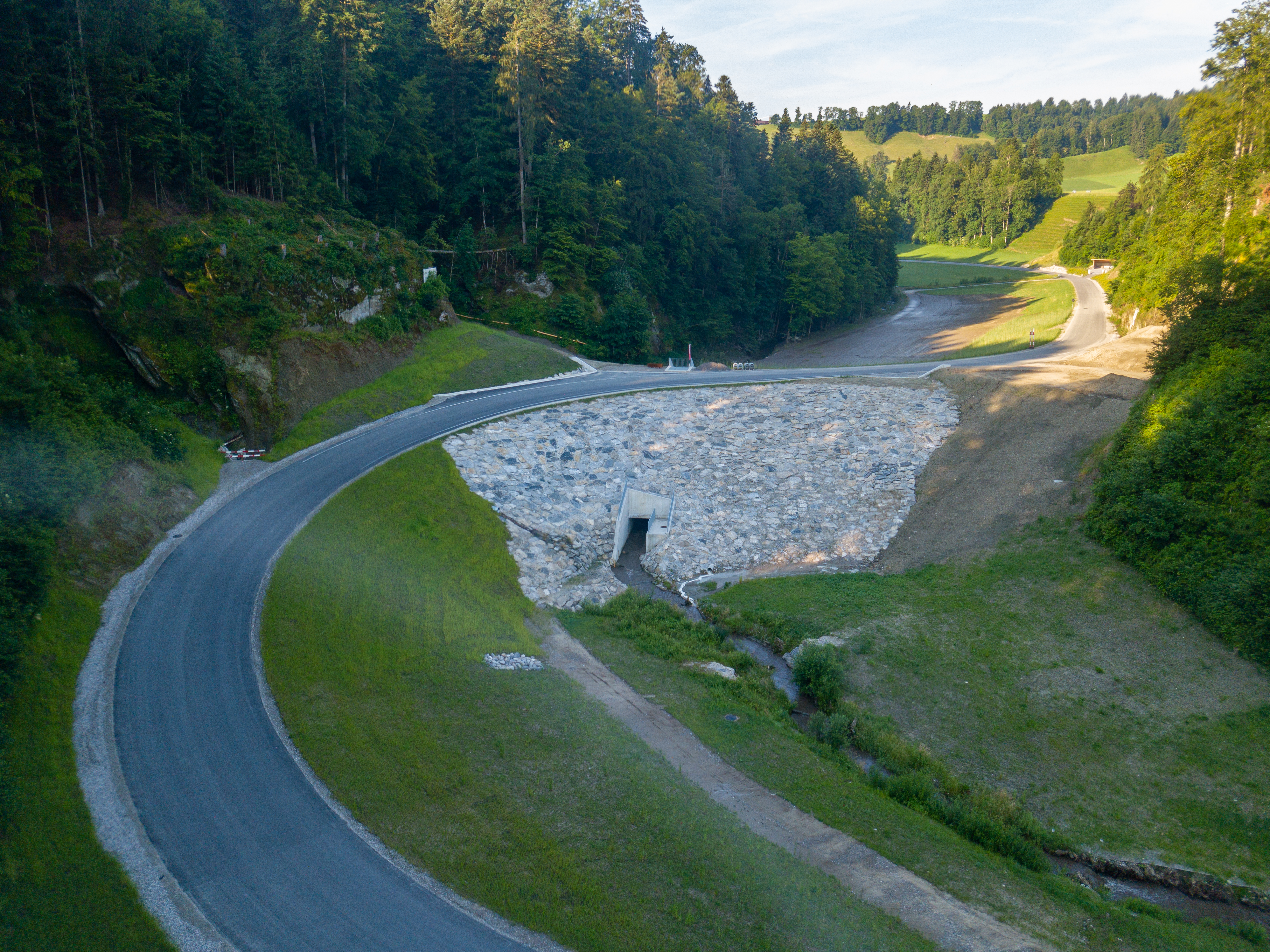 Nach knapp etwa drei Jahren Bauzeit konnte der Hochwasserschutzdamm in Oberburg im November 2020 in Betrieb genommen werden. Bereits im Sommer 2021 bewahrte der Damm trotz starken Regenfällen Oberburg und Burgdorf vor starken Überflutungen. Zudem wurden unterhalb des Damms der Luterbach und der Krauchthalbach revitalisiert. Mit den neu mäandrierenden Bächen wurden naturnahe Lebensräume geschaffen, um so einen Beitrag zur Erhaltung und Förderung der Biodiversität zu leisten.